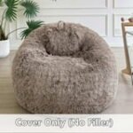 Faux Fur Stuffed Animal Storage Bean Bag Chair Cover (No Filler), Washable Fluffy Large Bean Bag Cover for Adults Girls, Furry Beanbag Cover for Textile Plush Toys Memory Foam (Ombre Khaki)