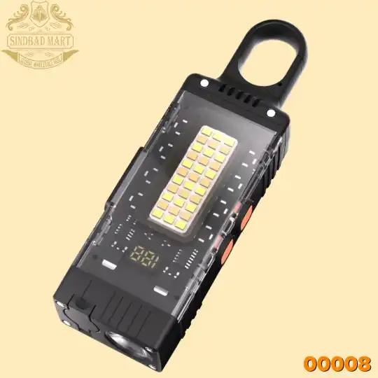 The 4-in-1 rechargeable flashlight is the ideal tool for those who enjoy outdoor activities such as camping. Its compact design of 15.4 cm in length and 5.2 cm in diameter makes it easy to carry, while its light weight of 100 g ensures that it does not become a burden in your backpack.